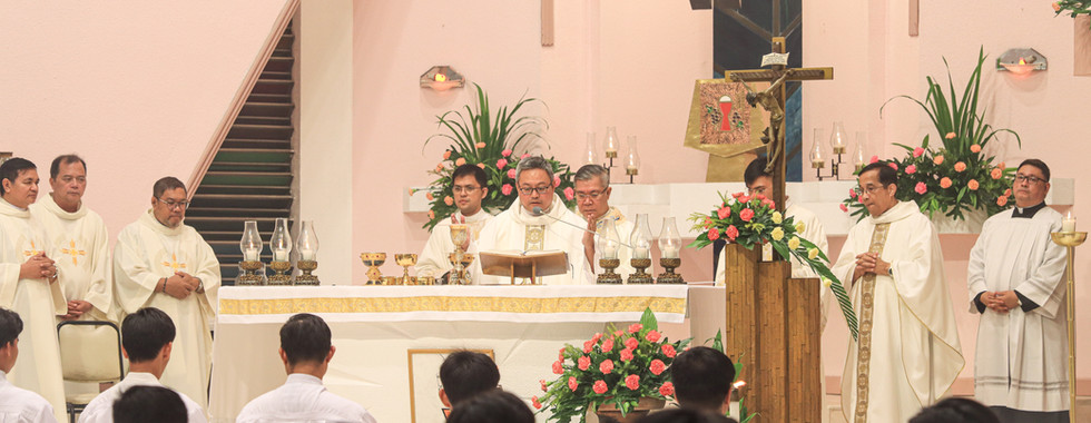 The 5:00 PM Eucharistic Celebration was presided over by Provincial Superior, Fr. Mario Sobrejuanite, SSP, concelebrated by numerous priests from the SSP communities of Makati, Pampanga, Silang, Pasay, and Davao. Also present were the aspirants of St. Paul Seminary in Silang, generous benefactors and sponsors of the renovation, and representatives from the Pauline Family.